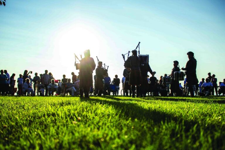 Ryerson Park was slowly painted plaid Saturday night, as the Piping Down the Sun celebration drew a crowd of about 150 people, many dressed in tartan kilts and Celtic dresses.