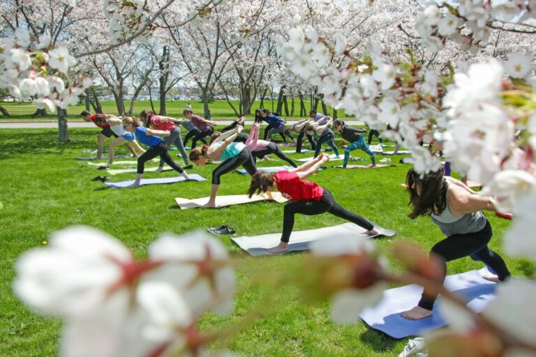 Brock University held the first ever yoga session among its cherry blossom trees at the base of Schmon Tower Monday. More than 30 people took part. Japan gave the trees to Brock in 2003 as a gesture of friendship between Japan and Canada.