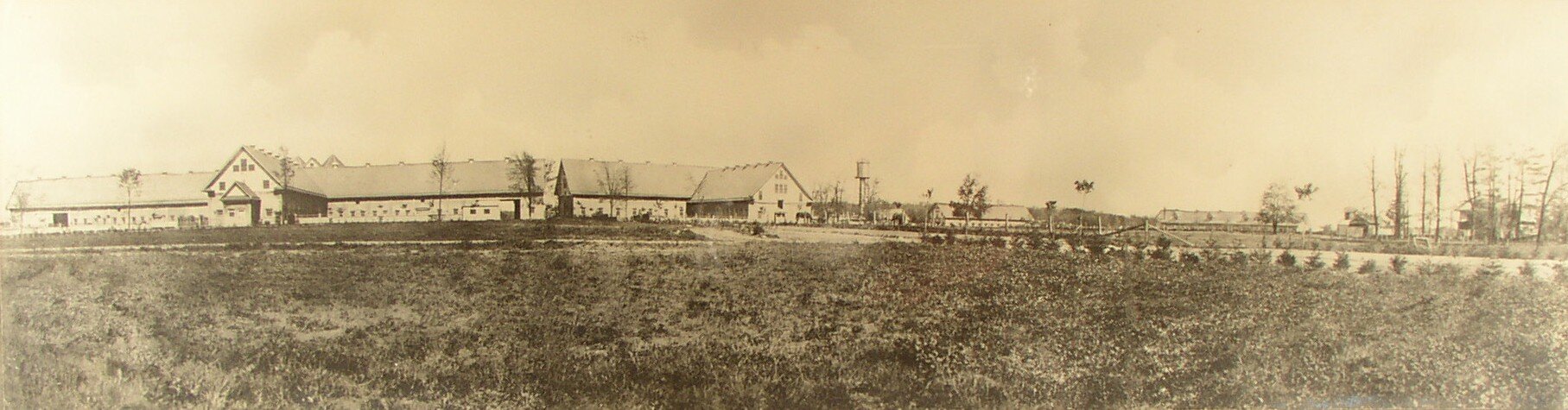 This photograph shows the Larkin farm that was located on the escarpment above Queenston. John Larkin, with his brother-in-law, founded the Larkin Company in Buffalo. Around 1900, Larkin began purchasing land in Niagara and eventually acquired several properties in Niagara-on-the-Lake, including Glencairn. He also developed three large farms totalling 1,900 acres.